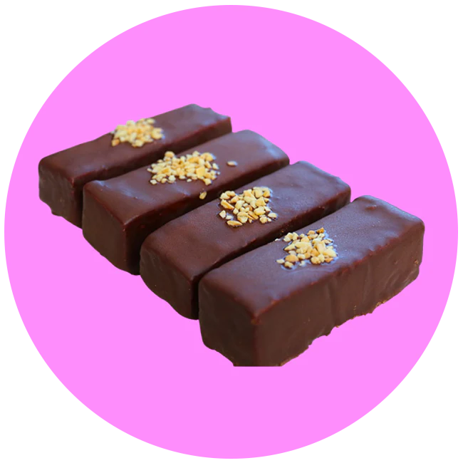 5 bars: Caramel Queen, Raspberry Passion, Choc Orange Jaffa, Snickers, Lemon Berry.